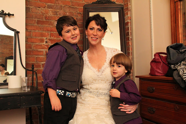 Having known both Karen & Tom well prior to their courting, I couldn't have been happier when I found out they were an "item"! Their love story is one of great redemption in a deep-rooted faith that "it's never too late to live happily ever after"! This winter wedding was filled with tons of laughter, dancing, and no major hiccups. I had photographed the Hannah wedding at Waterstone Conservatory the previous March but it was after daylight savings so this time around we didn't have the advantage of daylight for an outdoor ceremony or portraits. They had a small candlelit ceremony indoors and we worked with the exposed brick for group shots. I adore how their family pics came out, especially since each of them was bringing two boys to this new mix of six, and my favorite couple's shot is the one of the newlyweds sitting on the staircase at the end of the night!